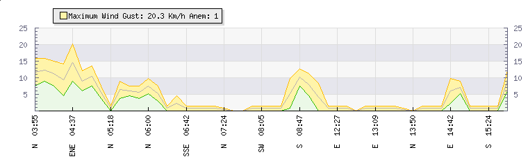 In the last few minutes the wind was Northerly at an average speed of 0 kmh, reaching up to 0 kmh and a low of 0 kmh. The gust strength is0 kmh above the minimum speed |