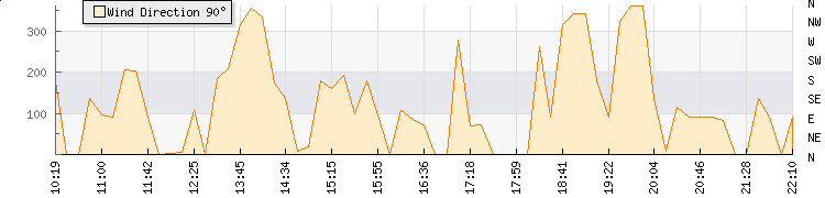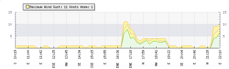 In the last few minutes the wind was Easterly at an average speed of 0 knots, reaching up to 0 knots and a low of 0 knots. The gust strength is0 knots above the minimum speed |