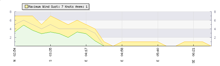 In the last few minutes the wind was Southerly at an average speed of 12 knots, reaching up to 16 knots and a low of 7 knots. The gust strength is9 knots above the minimum speed |