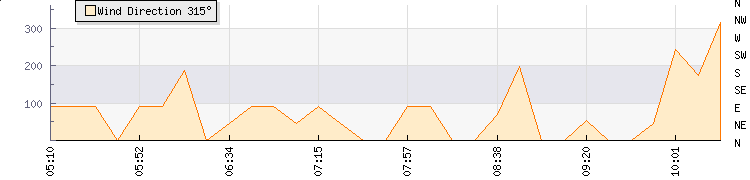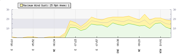 In the last few minutes the wind was North Westerly at an average speed of 14 mph, reaching up to 18 mph and a low of 9 mph. The gust strength is9 mph above the minimum speed |