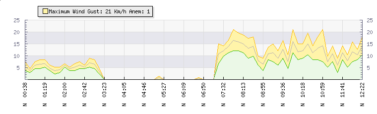 In the last few minutes the wind was Northerly at an average speed of 0 kmh, reaching up to 0 kmh and a low of 0 kmh.  The gust strength is0 kmh above the minimum speed             |