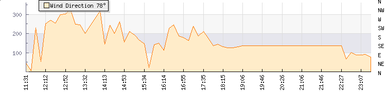 In the last few minutes the wind was South Easterly at an average speed of 0 kmh, reaching up to 0 kmh and a low of 0 kmh. The gust strength is0 kmh above the minimum speed |