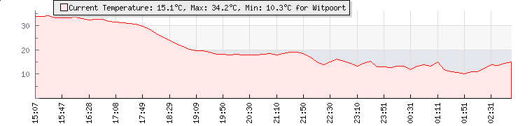 | GPS Co-ordinates: | S 26º 37' 04, E 27º 20' 46 | | ASL: | 4560 feet | | Sunrise / Sunset: | 05:27 / 18:23 | | Beaufort Scale: | Calm |
