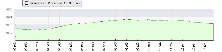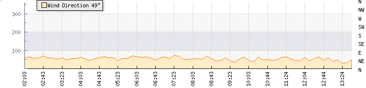 In the last few minutes the wind was North Easterly at an average speed of 11 mph, reaching up to 13 mph and a low of 9 mph. The gust strength is4 mph above the minimum speed |