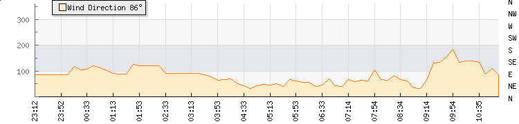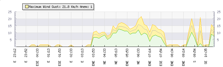 In the last few minutes the wind was East North East at an average speed of 1 kmh, reaching up to 2 kmh and a low of 0 kmh. The gust strength is2 kmh above the minimum speed |