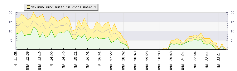 In the last few minutes the wind was North North East at an average speed of 1 knots, reaching up to 1 knots and a low of 0 knots. The gust strength is1 knots above the minimum speed |