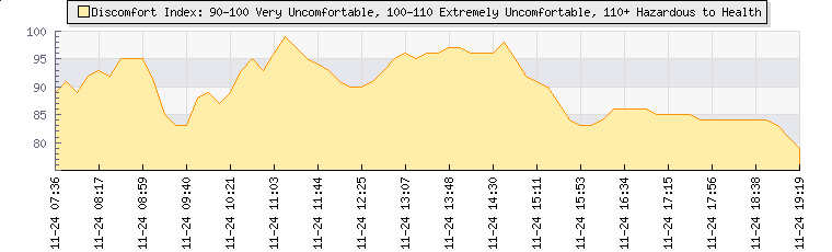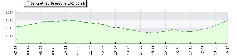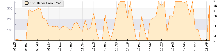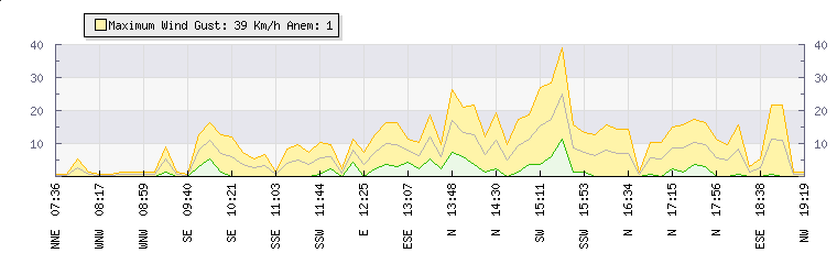 In the last few minutes the wind was South Westerly at an average speed of 5 kmh, reaching up to 10 kmh and a low of 0 kmh. The gust strength is10 kmh above the minimum speed |