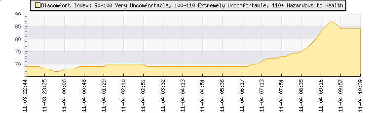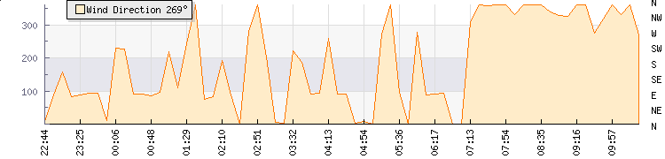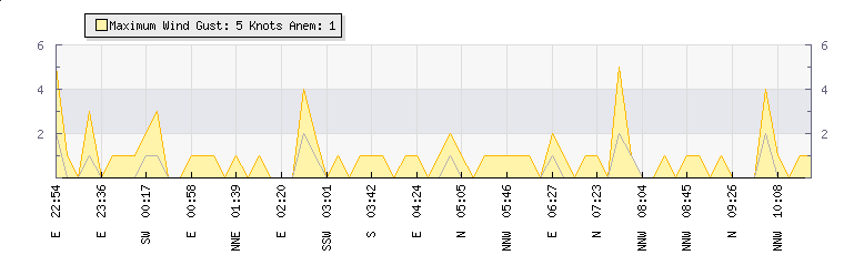 In the last few minutes the wind was Easterly at an average speed of 1 knots, reaching up to 1 knots and a low of 0 knots.  The gust strength is1 knots above the minimum speed             |