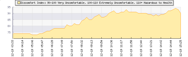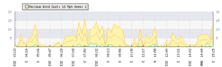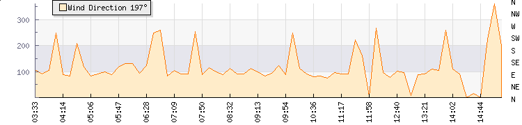 In the last few minutes the wind was Westerly at an average speed of 1 mph, reaching up to 1 mph and a low of 0 mph. The gust strength is1 mph above the minimum speed |
