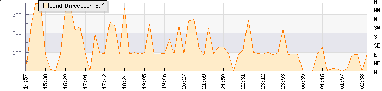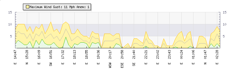 In the last few minutes the wind was South Easterly at an average speed of 0 mph, reaching up to 0 mph and a low of 0 mph. The gust strength is0 mph above the minimum speed |