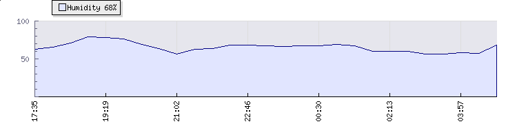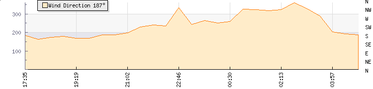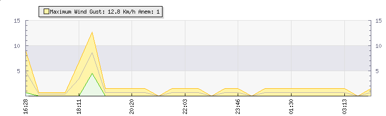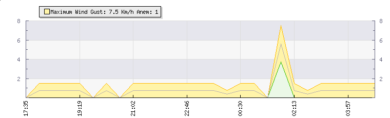 In the last few minutes the wind was blowing at an average speed of 1 kmh, reaching up to 2 kmh and a low of 0 kmh. The gust strength is2 kmh above the minimum speed |