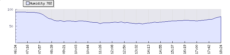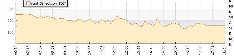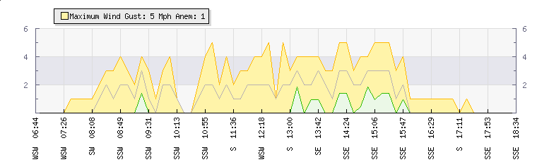 In the last few minutes the wind was Southerly at an average speed of 1 mph, reaching up to 1 mph and a low of 0 mph. The gust strength is1 mph above the minimum speed |