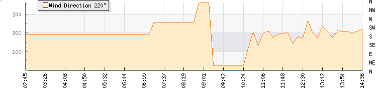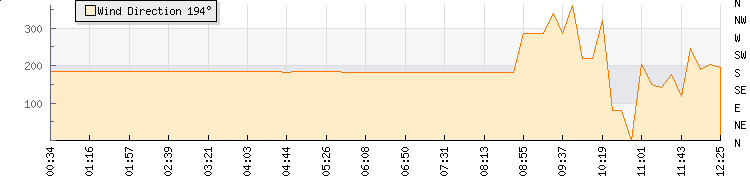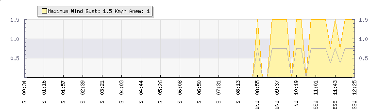 In the last few minutes the wind was South South West at an average speed of 1 kmh, reaching up to 2 kmh and a low of 0 kmh. The gust strength is2 kmh above the minimum speed |