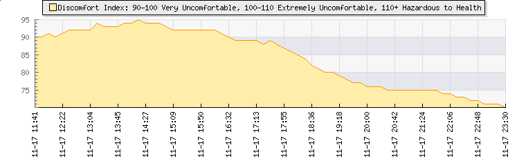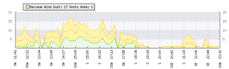 In the last few minutes the wind was South Easterly at an average speed of 1 knots, reaching up to 1 knots and a low of 0 knots. The gust strength is1 knots above the minimum speed |