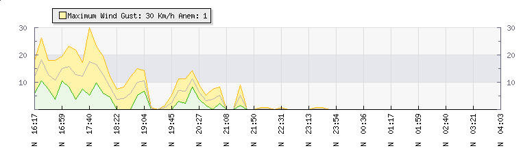 In the last few minutes the wind was Northerly at an average speed of 0 kmh, reaching up to 0 kmh and a low of 0 kmh. The gust strength is0 kmh above the minimum speed |
