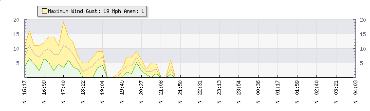 In the last few minutes the wind was Northerly at an average speed of 0 mph, reaching up to 0 mph and a low of 0 mph. The gust strength is0 mph above the minimum speed |