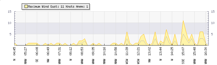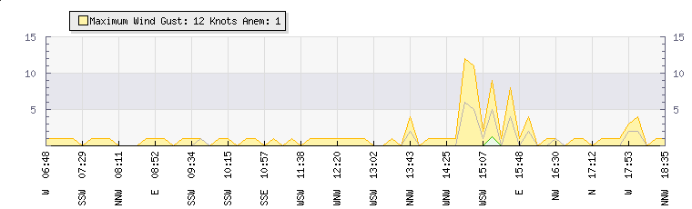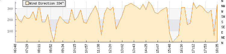 In the last few minutes the wind was Northerly at an average speed of 0 knots, reaching up to 0 knots and a low of 0 knots. The gust strength is0 knots above the minimum speed |