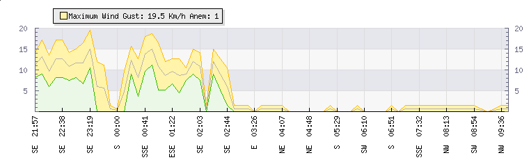In the last few minutes the wind was North Westerly at an average speed of 1 kmh, reaching up to 2 kmh and a low of 0 kmh. The gust strength is2 kmh above the minimum speed |