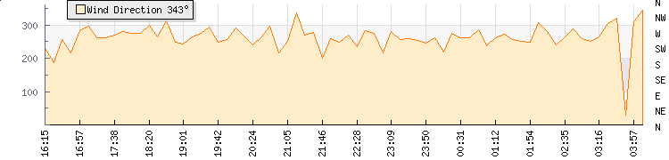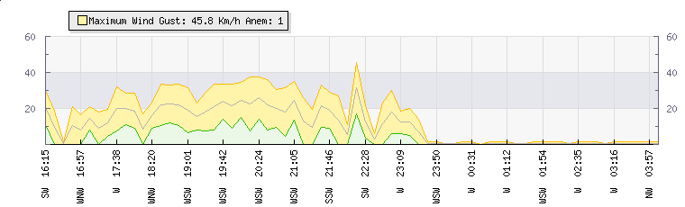 In the last few minutes the wind was West South West at an average speed of 1 kmh, reaching up to 1 kmh and a low of 0 kmh. The gust strength is1 kmh above the minimum speed |