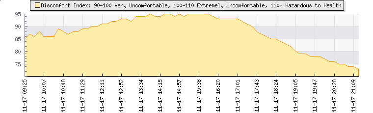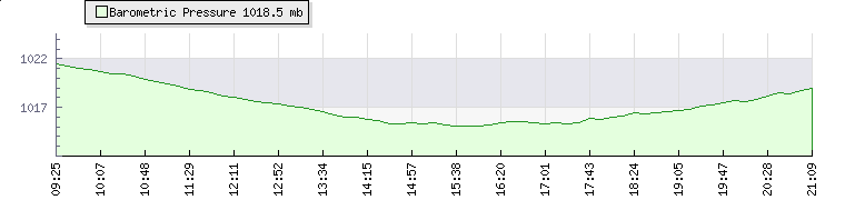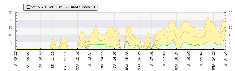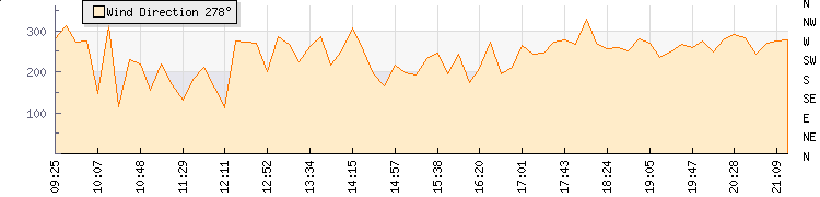 In the last few minutes the wind was Westerly at an average speed of 11 knots, reaching up to 18 knots and a low of 3 knots. The gust strength is15 knots above the minimum speed |