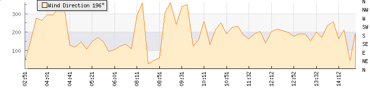 In the last few minutes the wind was South South East at an average speed of 17 kmh, reaching up to 25 kmh and a low of 8 kmh. The gust strength is17 kmh above the minimum speed |