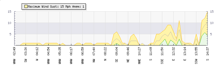 In the last few minutes the wind was Northerly at an average speed of 1 mph, reaching up to 1 mph and a low of 0 mph. The gust strength is1 mph above the minimum speed |
