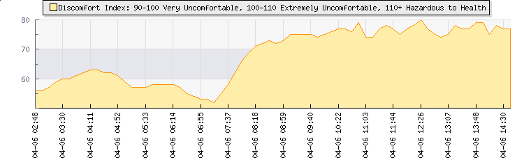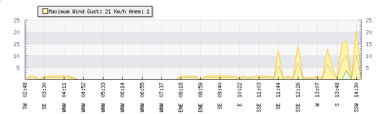 In the last few minutes the wind was Westerly at an average speed of 1 kmh, reaching up to 2 kmh and a low of 0 kmh. The gust strength is2 kmh above the minimum speed |