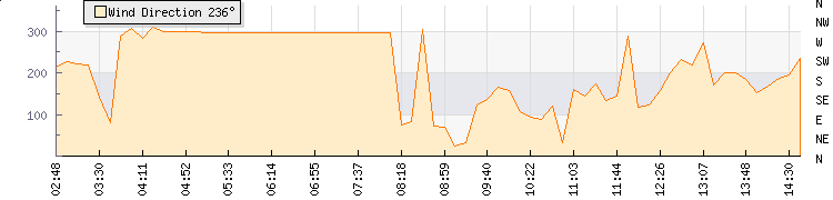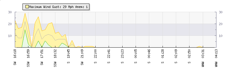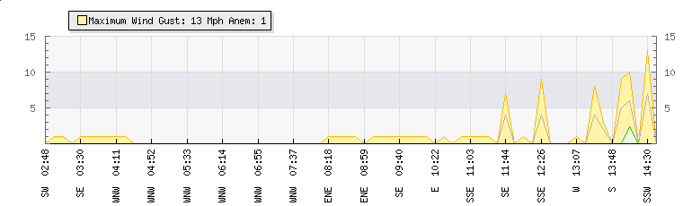 In the last few minutes the wind was Southerly at an average speed of 0 mph, reaching up to 0 mph and a low of 0 mph. The gust strength is0 mph above the minimum speed |