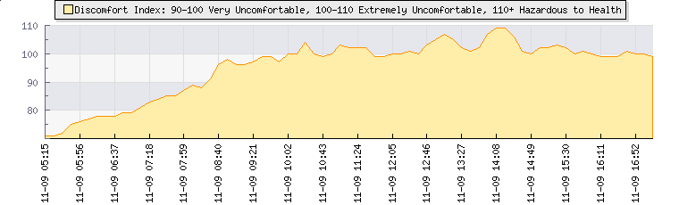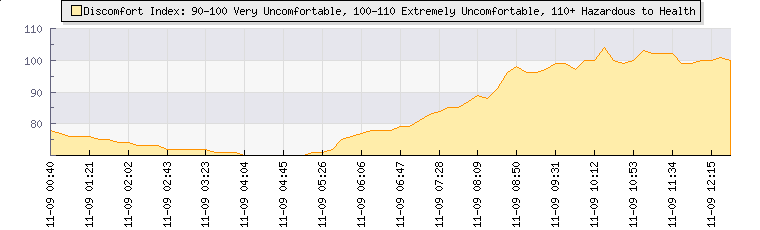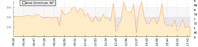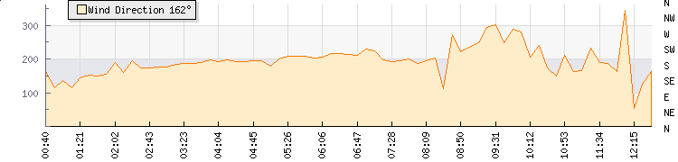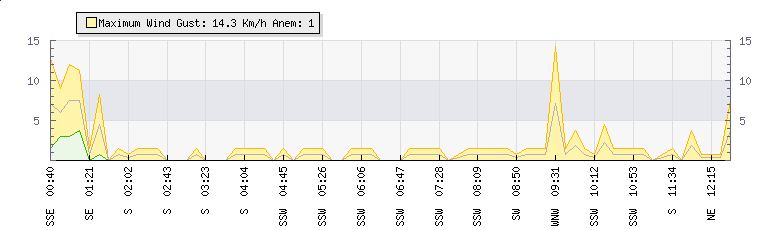 In the last few minutes the wind was Westerly at an average speed of 1 kmh, reaching up to 2 kmh and a low of 0 kmh. The gust strength is2 kmh above the minimum speed |