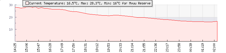 GPS Co-ordinates: | S 24º 5' 39, E 31º 5' 10 | ASL: | 1341 feet | Sunrise / Sunset: | 05:18 / 18:03 | Beaufort Scale: | Gentle Breeze |