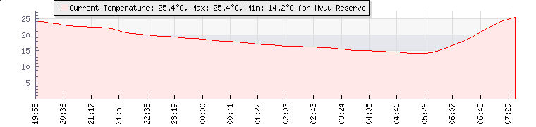 GPS Co-ordinates: | S 24º 5' 39, E 31º 5' 10 | ASL: | 1341 feet | Sunrise / Sunset: | 05:17 / 18:04 | Beaufort Scale: | Calm |