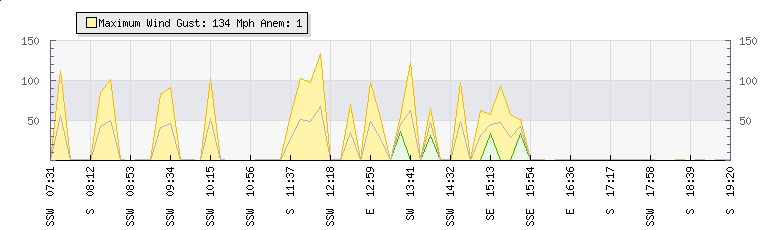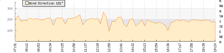 In the last few minutes the wind was South South West at an average speed of 0 mph, reaching up to 0 mph and a low of 0 mph. The gust strength is0 mph above the minimum speed |