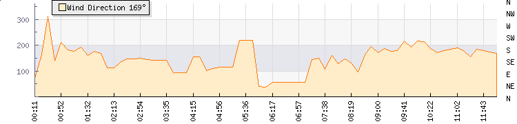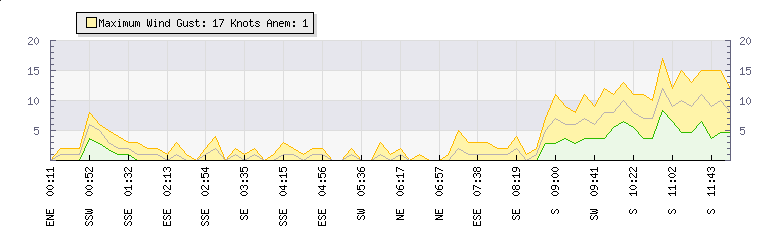 In the last few minutes the wind was Southerly at an average speed of 7 knots, reaching up to 11 knots and a low of 4 knots. The gust strength is7 knots above the minimum speed |