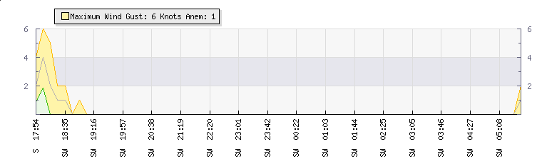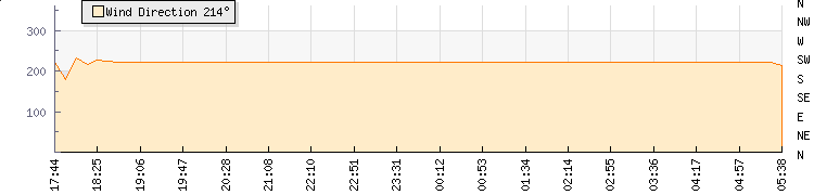 In the last few minutes the wind was South Westerly at an average speed of 0 knots, reaching up to 0 knots and a low of 0 knots. The gust strength is0 knots above the minimum speed |