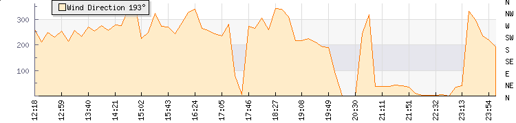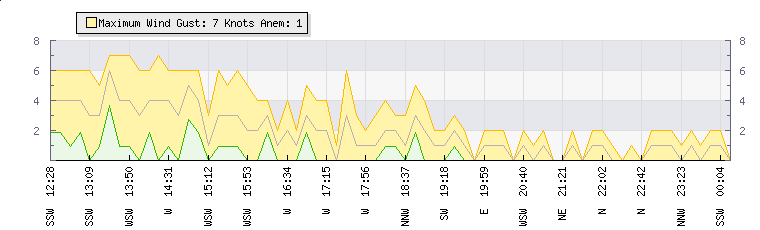 In the last few minutes the wind was North North West at an average speed of 1 knots, reaching up to 2 knots and a low of 0 knots. The gust strength is2 knots above the minimum speed |