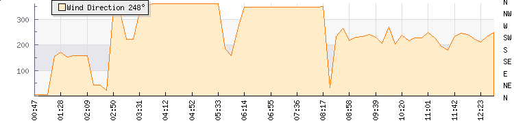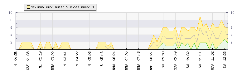 In the last few minutes the wind was South Westerly at an average speed of 6 knots, reaching up to 9 knots and a low of 2 knots. The gust strength is7 knots above the minimum speed |