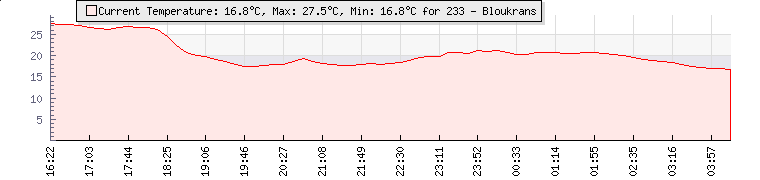 GPS Co-ordinates: | S 33º 57' 58, E 23º 39' 32 | ASL: | 656 feet | Sunrise / Sunset: | 05:43 / 18:39 | Beaufort Scale: | Light Air |