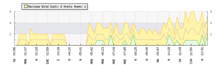 In the last few minutes the wind was Westerly at an average speed of 2 knots, reaching up to 4 knots and a low of 0 knots. The gust strength is4 knots above the minimum speed |