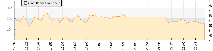 In the last few minutes the wind was South South West at an average speed of 2 kmh, reaching up to 3 kmh and a low of 0 kmh. The gust strength is3 kmh above the minimum speed |