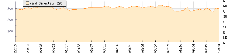 In the last few minutes the wind was West North West at an average speed of 17 kmh, reaching up to 26 kmh and a low of 9 kmh. The gust strength is17 kmh above the minimum speed |