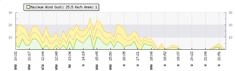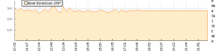 In the last few minutes the wind was Westerly at an average speed of 0 kmh, reaching up to 0 kmh and a low of 0 kmh. The gust strength is0 kmh above the minimum speed |