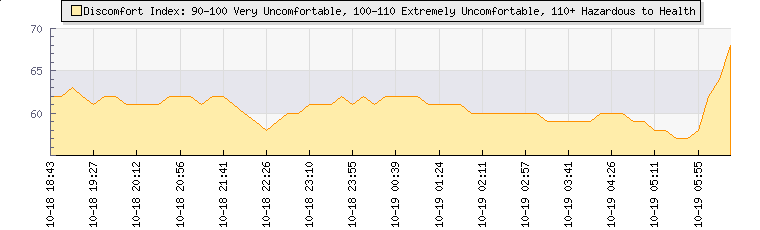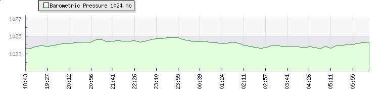 Wind Speed: | 2|3|5 kmh | Wind Direction: | NW 322° | Temperature: | 12.9°C | Wet Bulb: | 11.6°C | Discomfort: | 61 | Humidity: | 88% | Rainfall Today: | 1.1mm | 12 hrs Rainfall: | 0mm | 24 hrs Rainfall: | 1.1mm | Barometer: | 1024.4mb | Dew Point: | 10.9°C | Clouds AGL: | 776ft (237 m) | Density-Alt: | 6342ft (1933 m) | Fire Danger: | | Webcam: |  |