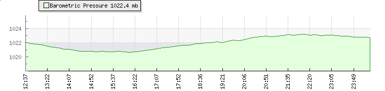 Wind Speed: | 0|2|3 kmh | Wind Direction: | SSW 192° | Temperature: | 18.9°C | Wet Bulb: | 12.7°C | Discomfort: | 71 | Humidity: | 50% | Rainfall Today: | 0mm | 12 hrs Rainfall: | 0mm | 24 hrs Rainfall: | 0mm | Barometer: | 1022.7mb | Dew Point: | 8.2°C | Clouds AGL: | 4262ft (1299 m) | Density-Alt: | 7041ft (2146 m) | Fire Danger: | | Webcam: |  |