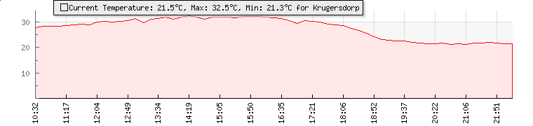 | Wind Gust: | 26 km/h | Min Temp: | 18.1 °C | Max Temp: | 32.5 °C | | Wind Average: | 19 km/h | Min Hum: | 37 % | Max Hum: | 87 % | |  |