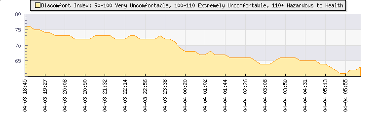 Wet Bulb:12.5°CDiscomfort:64Humidity:90%