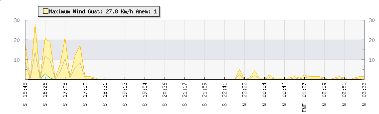 Wind Gust: | 2 km/h | Min Temp: | 11.6 °C | Max Temp: | 12.5 °C | Wind Average: | 1 km/h | Min Hum: | 77 % | Max Hum: | 84 % | |  |