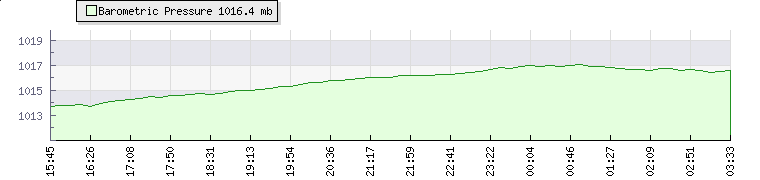 Wind Speed: | 0|0|0 mph | Wind Direction: | N 2° | Temperature: | 11.6°C | Wet Bulb: | 9.9°C | Discomfort: | 57 | Humidity: | 84% | Rainfall Today: | 0mm | 12 hrs Rainfall: | 0mm | 24 hrs Rainfall: | 0mm | Barometer: | 1016.4mb | Dew Point: | 9°C | Clouds AGL: | 1045ft (319 m) | Density-Alt: | -371ft (-113 m) | Fire Danger: | |
