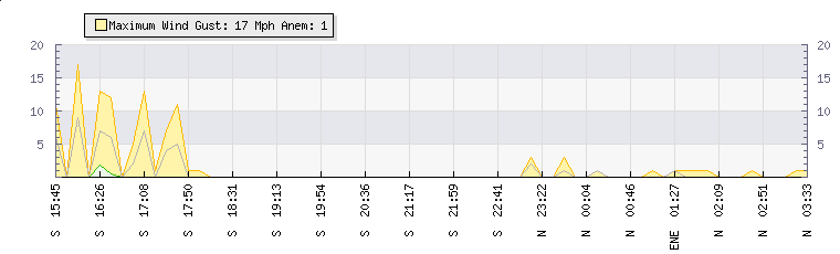 In the last few minutes the wind was Northerly at an average speed of 0 mph, reaching up to 0 mph and a low of 0 mph. The gust strength is0 mph above the minimum speed |