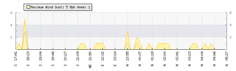 | Wind Gust: | 2 mph | Min Temp: | 14.4 °C | Max Temp: | 17.3 °C | | Wind Average: | 1 mph | Min Hum: | 68 % | Max Hum: | 83 % | |  |