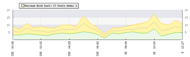 In the last few minutes the wind was East South East at an average speed of 8 knots, reaching up to 12 knots and a low of 4 knots. The gust strength is8 knots above the minimum speed |